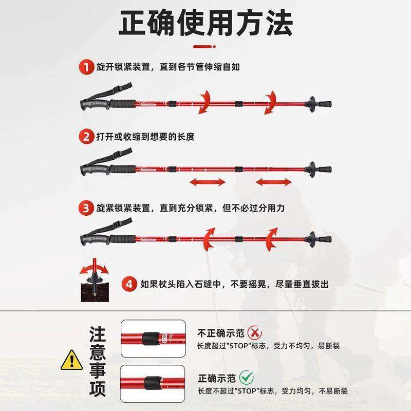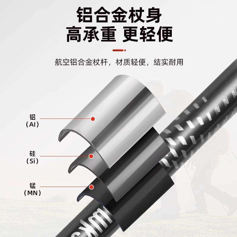 登山杖户外超轻伸缩杖男女爬山徒步装备防滑多功能老人拐杖