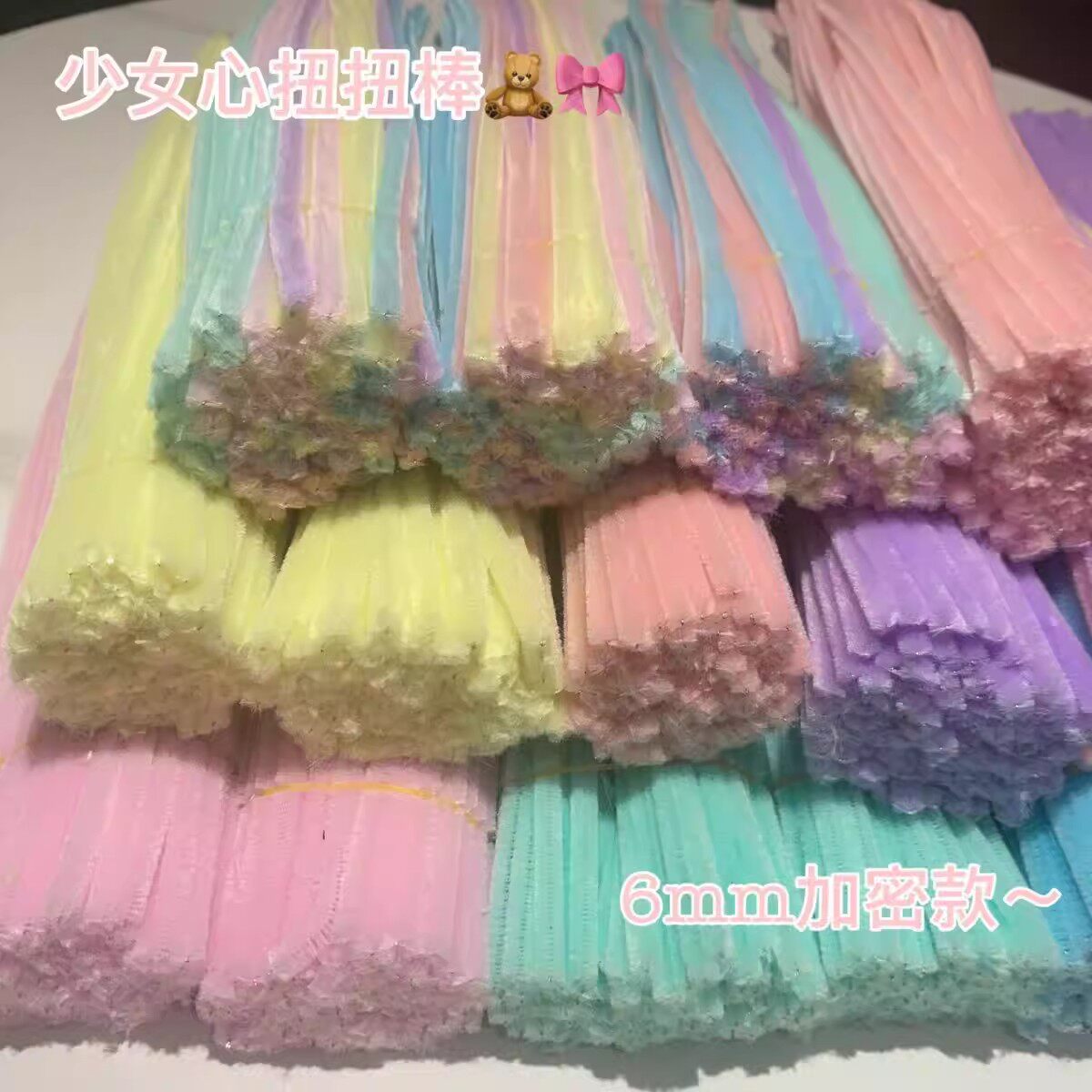 扭扭棒花束手工diy加粗彩色毛绒毛条毛根加密材料包饰品马卡龙色