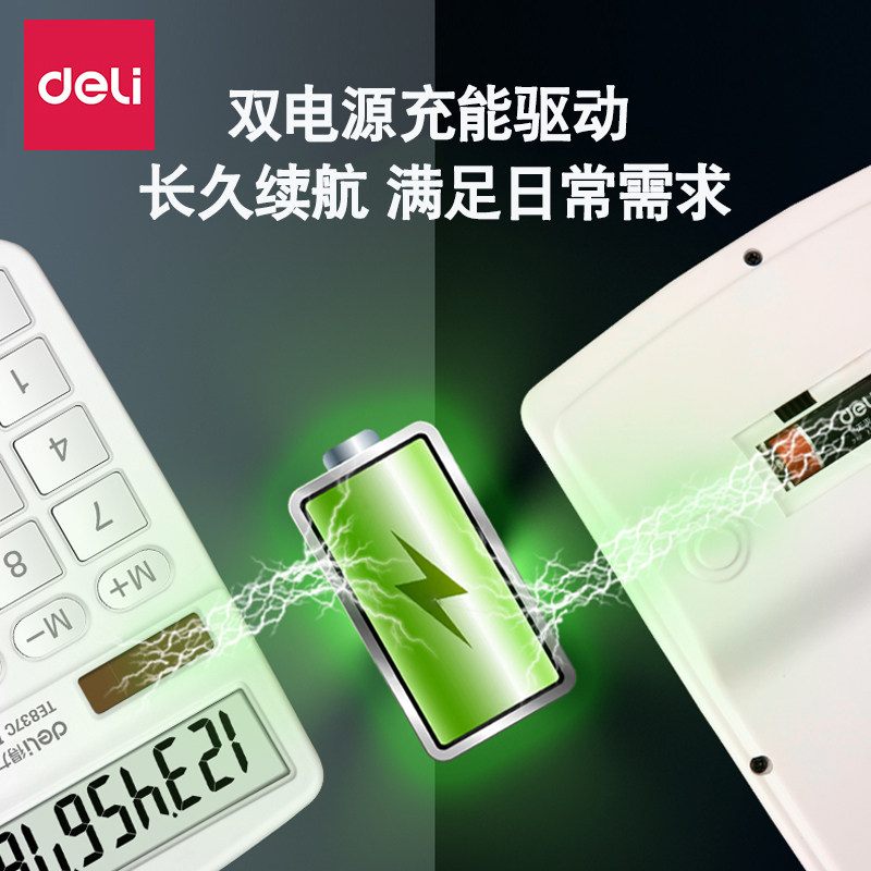 得力计算器大屏大按键电池款办公商务财务用太阳能大号宽屏计算机