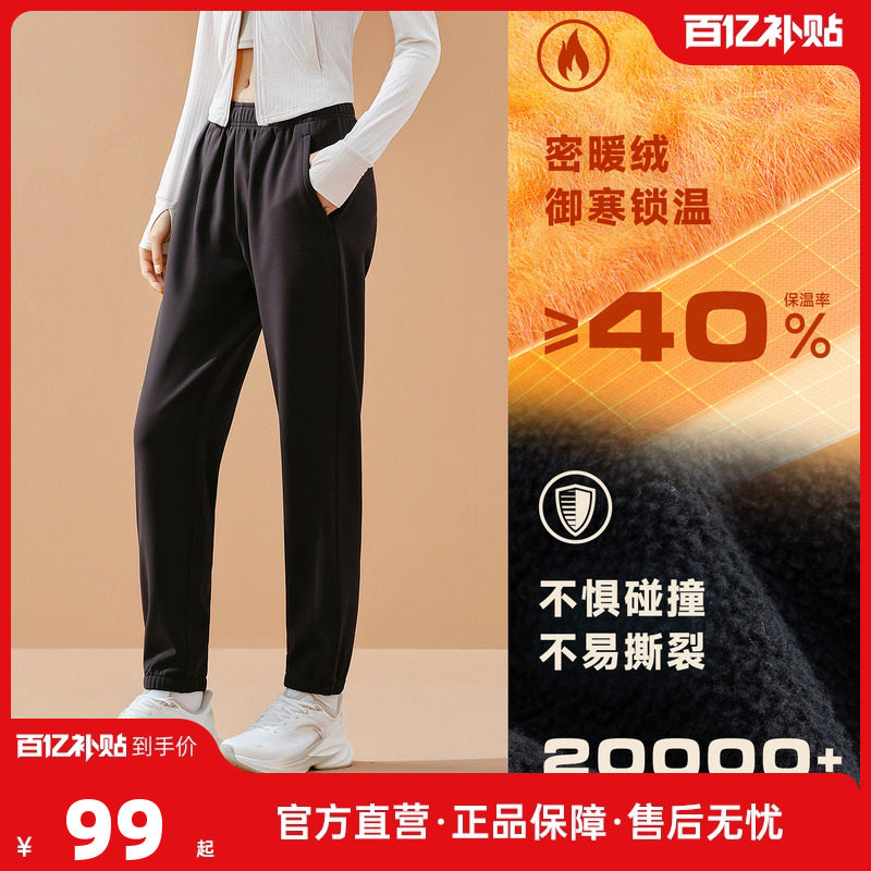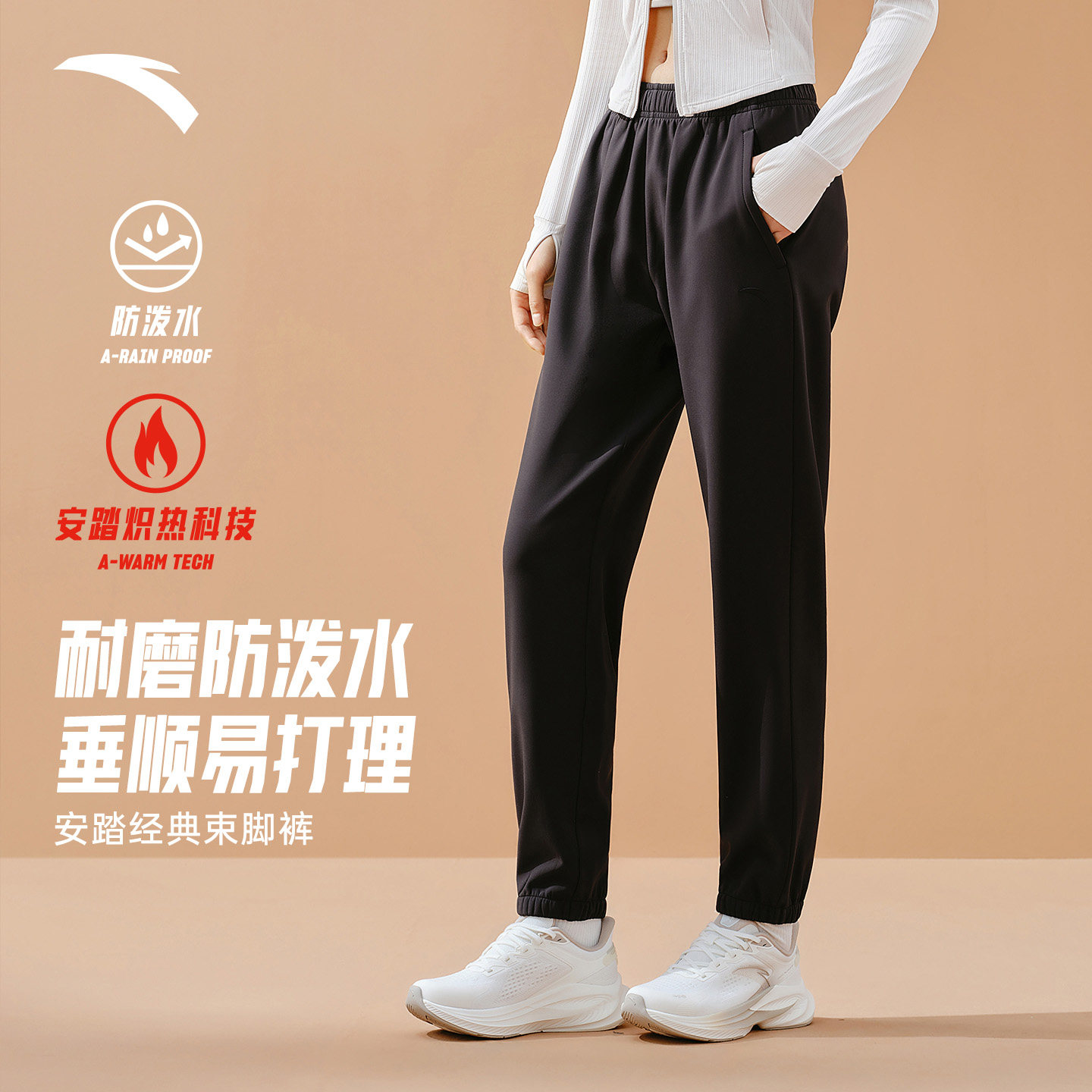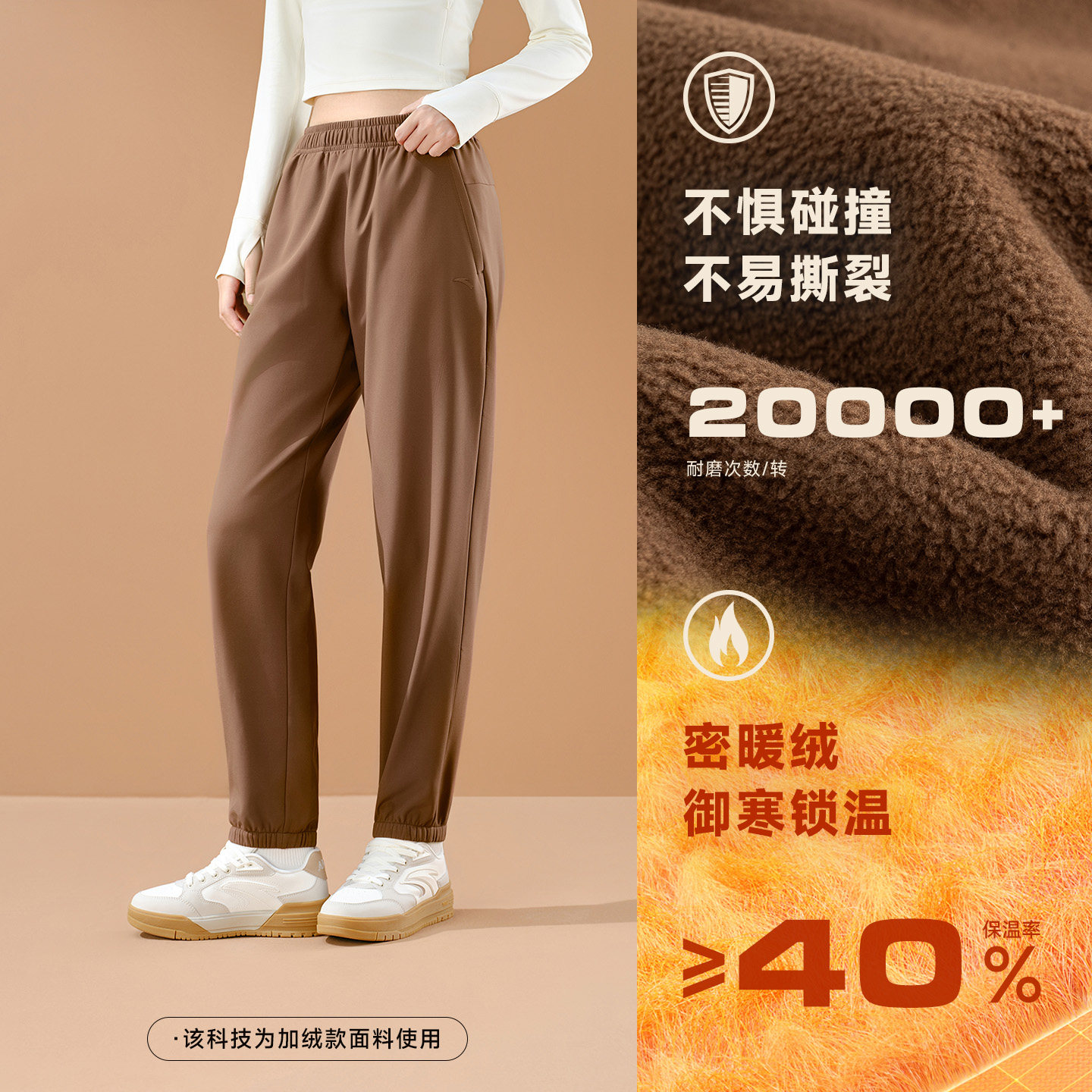 安踏加绒防泼水运动裤女冬季保暖新款长裤束脚收口裤商务通勤裤