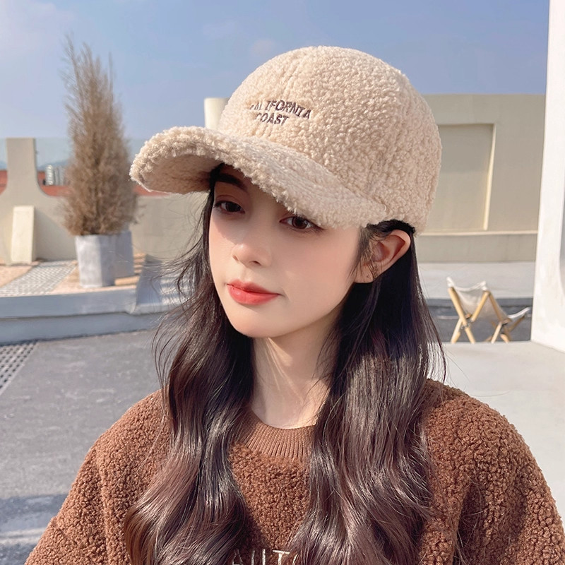 棒球帽女士秋冬季百搭时尚毛绒鸭舌帽洋气的帽子冬款粉色休闲黑色