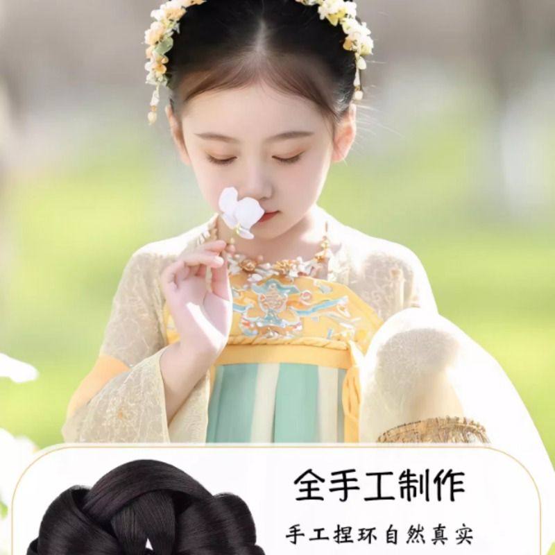 儿童汉服假发一体式古风盘发发髻女童蝴蝶结发包古装头饰垫发造型