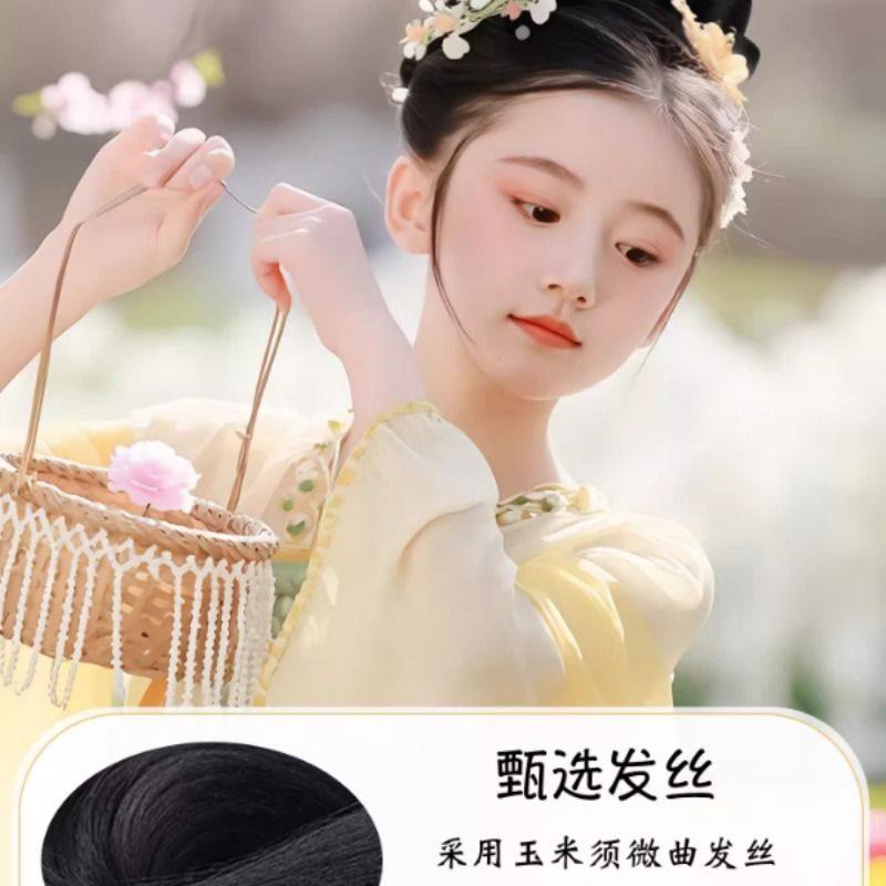 儿童汉服头饰古风假发包盘发造型古装成品发髻女童日常垫发发饰