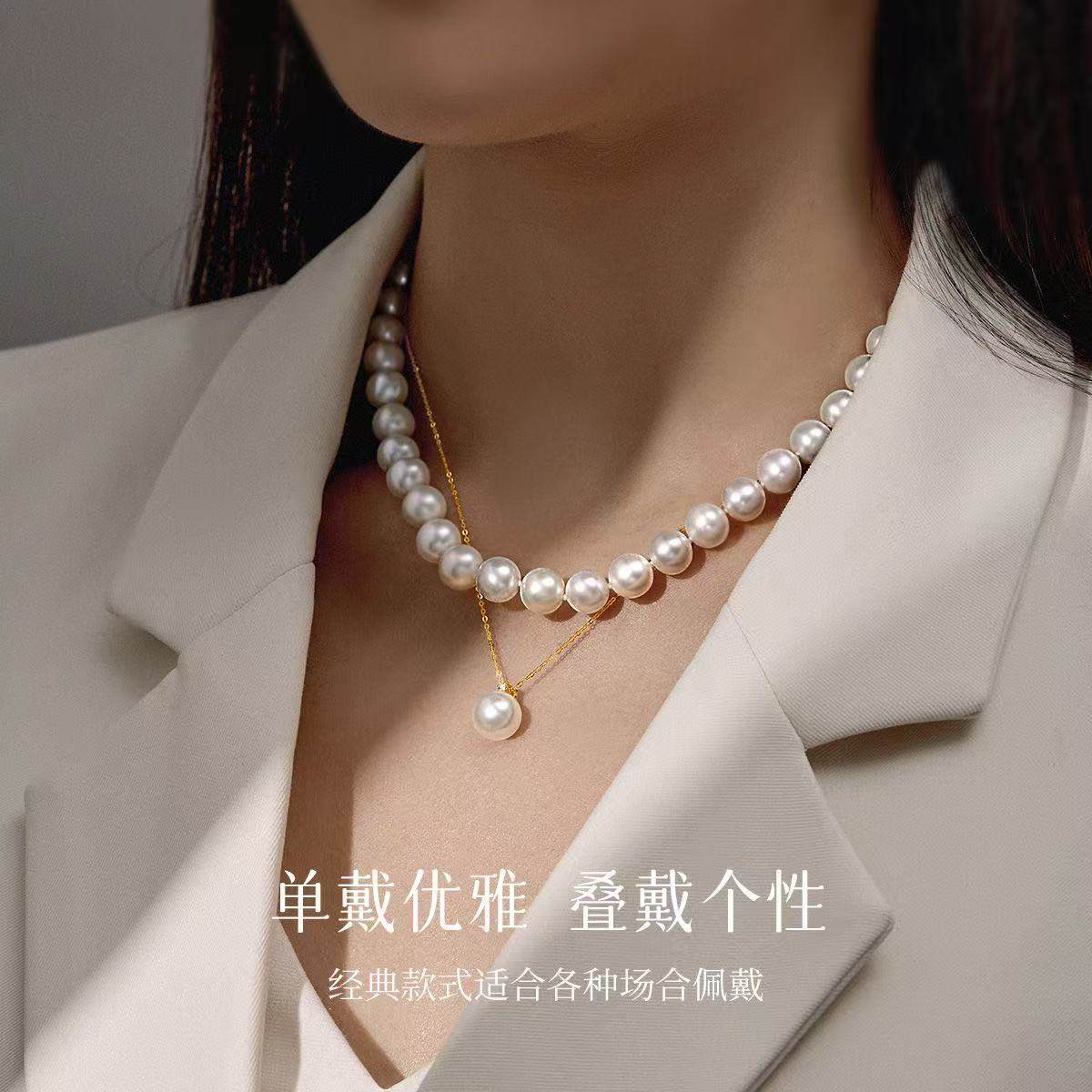 诸暨高品质珍珠项链女正圆强光妈妈链送女友婆婆长辈礼物淡水国货