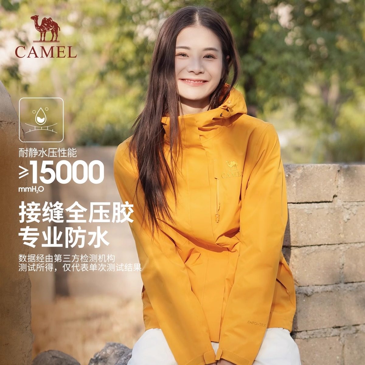 骆驼女装单层冲锋衣2025新款秋冬户外防风防水连帽立领男女款外套