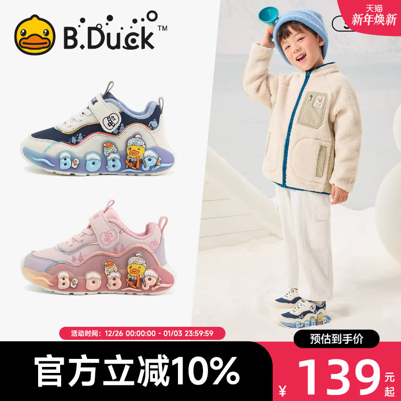 B.Duck小黄鸭童鞋女童运动鞋加绒宝宝冬季新款男童二棉棉鞋