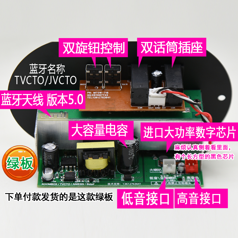 双话筒大功率蓝牙功放板12V24V220V低音炮功放板音箱主板车载通用