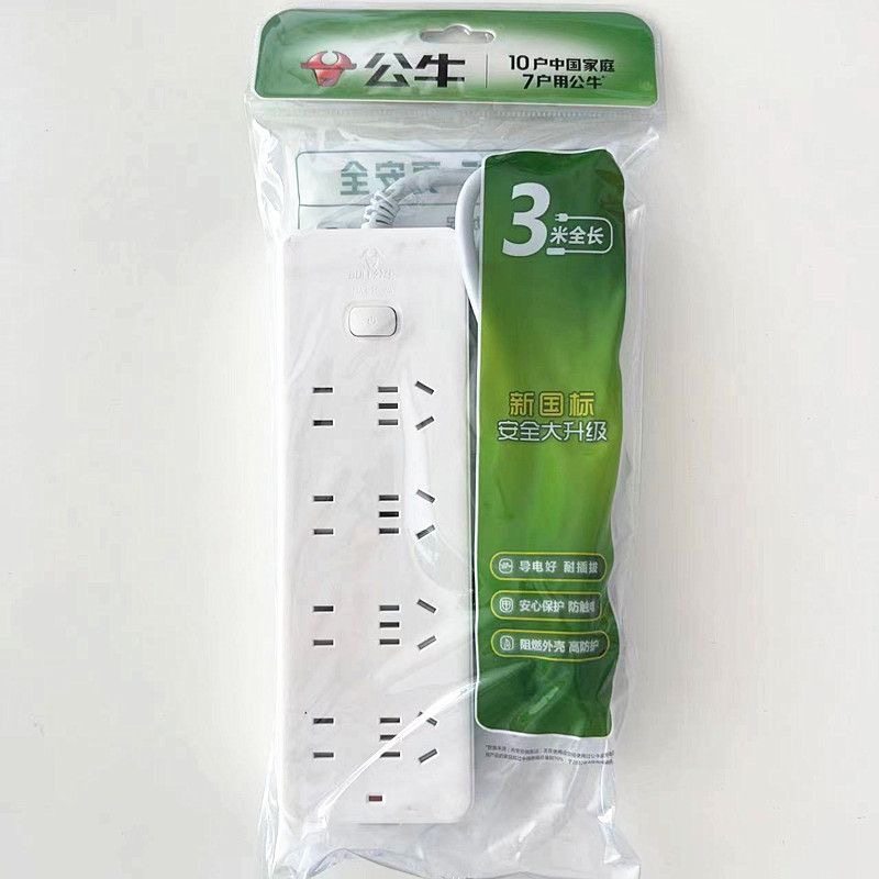 公牛插座插排插线板3米拖线板8插位五孔家用电源总控大间距条形
