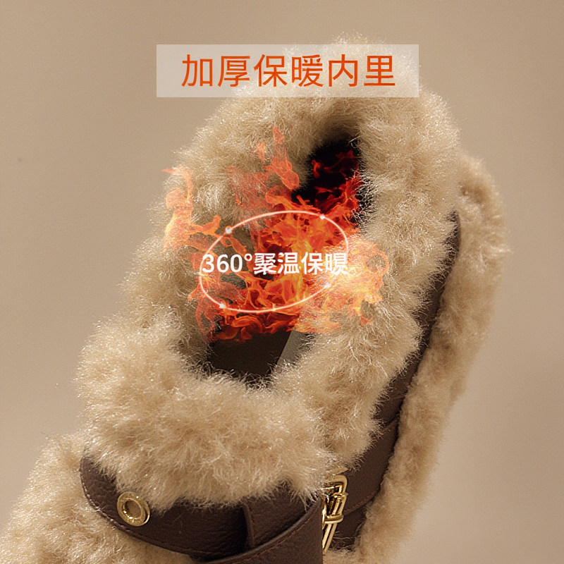 【羊羔绒】毛毛鞋女2025冬新款高级感网红雪地靴加绒厚底豆豆棉鞋