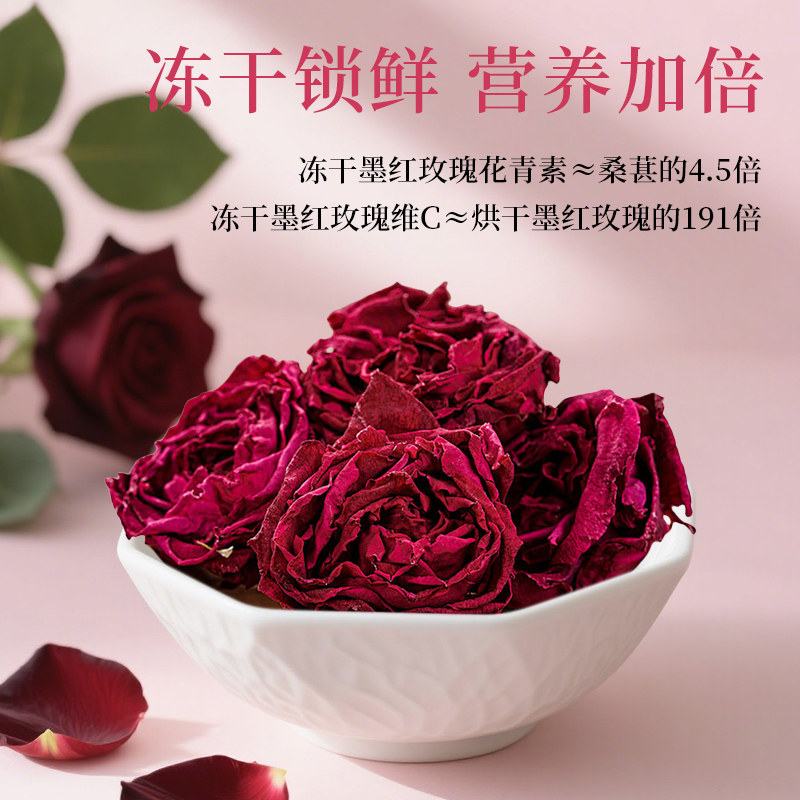 养辰云南精选大朵冻干墨红玫瑰花茶干玫瑰花冠泡茶一朵一杯50g装
