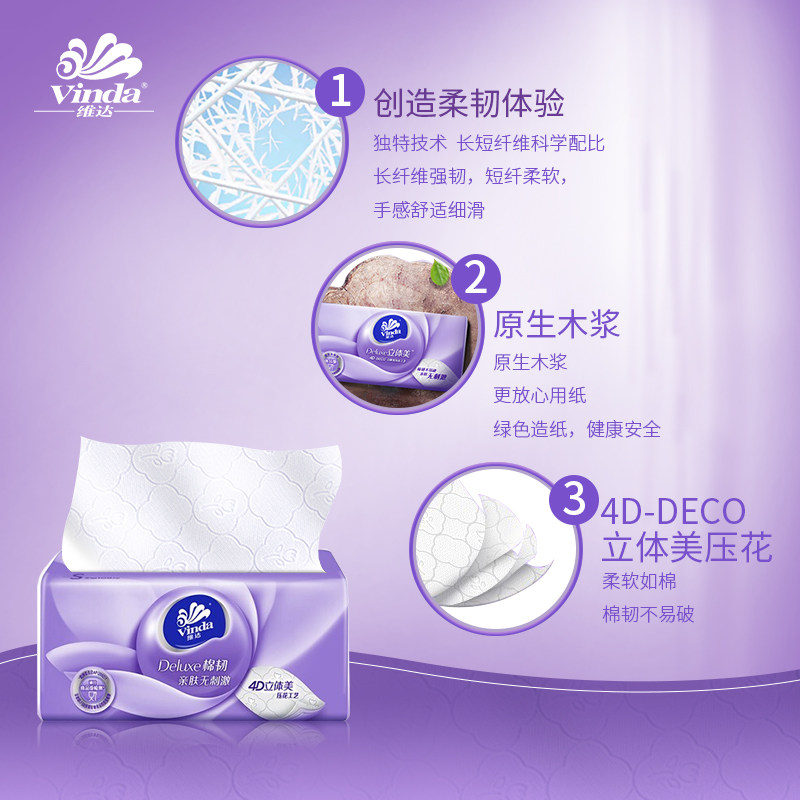 【进直播间】维达棉韧抽纸3层卫生纸巾实惠装餐巾纸面巾整箱家用