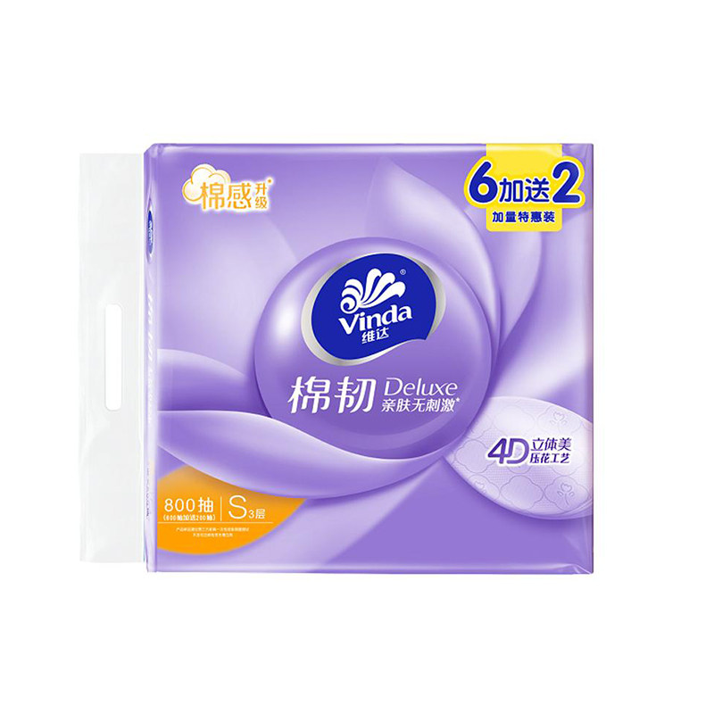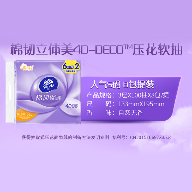 维达抽纸棉韧S码100抽8包家用实惠装餐巾纸卫生纸面巾纸木浆原生