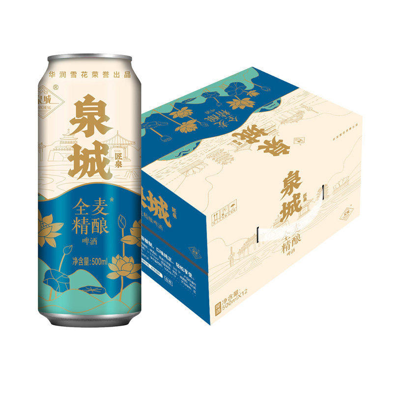 华润雪花荣誉出品泉城匠泉全麦精酿啤酒 泉城匠泉 500mL 12罐