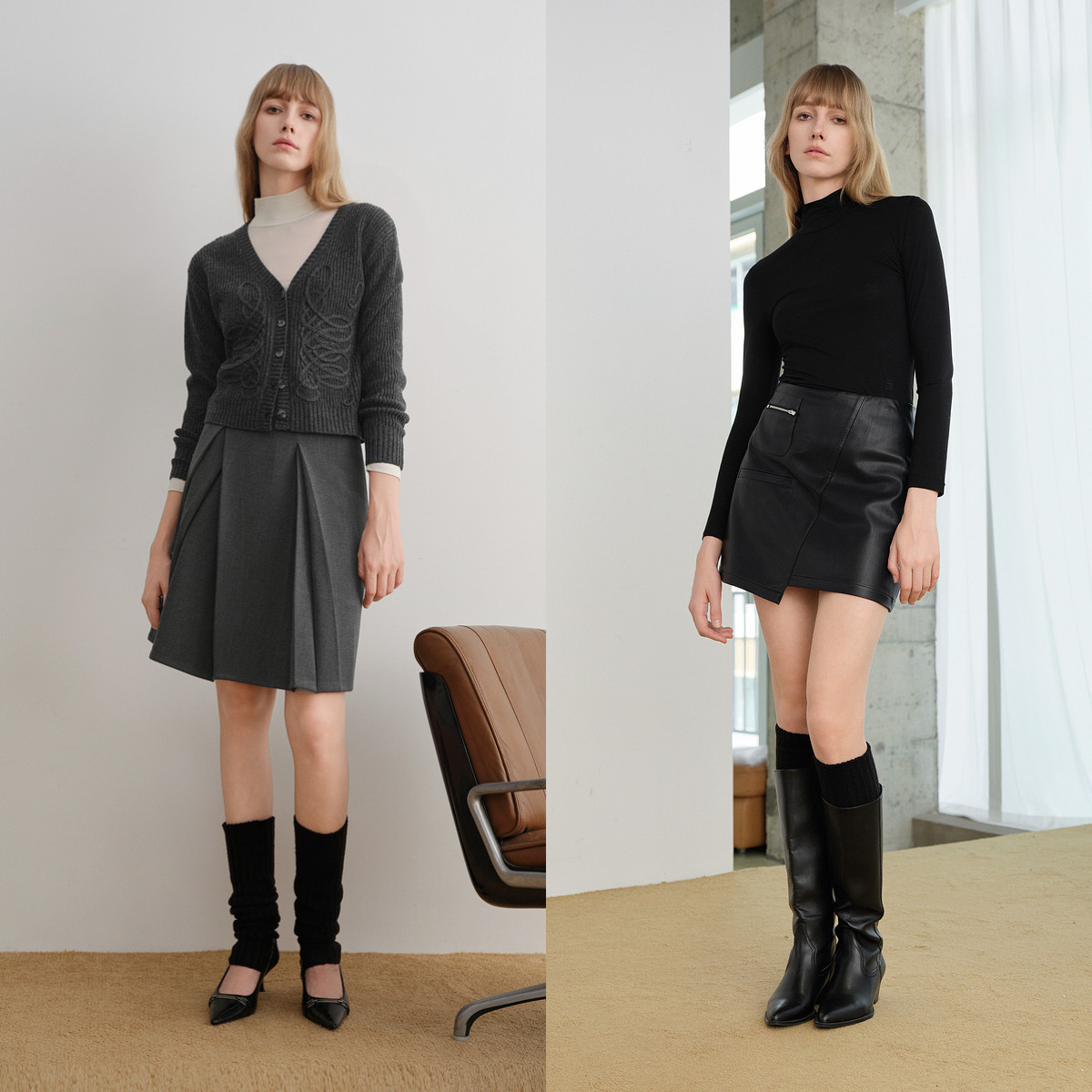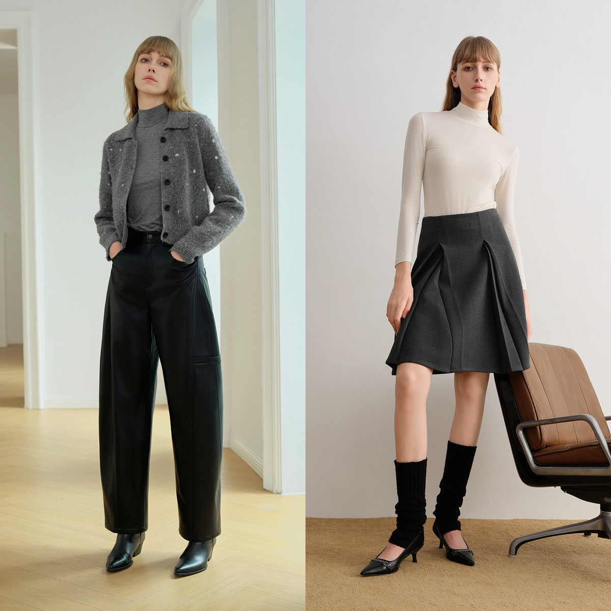 【商场同款】ELLE莱赛尔天丝长袖T恤女2025冬装新款简约羊毛上衣