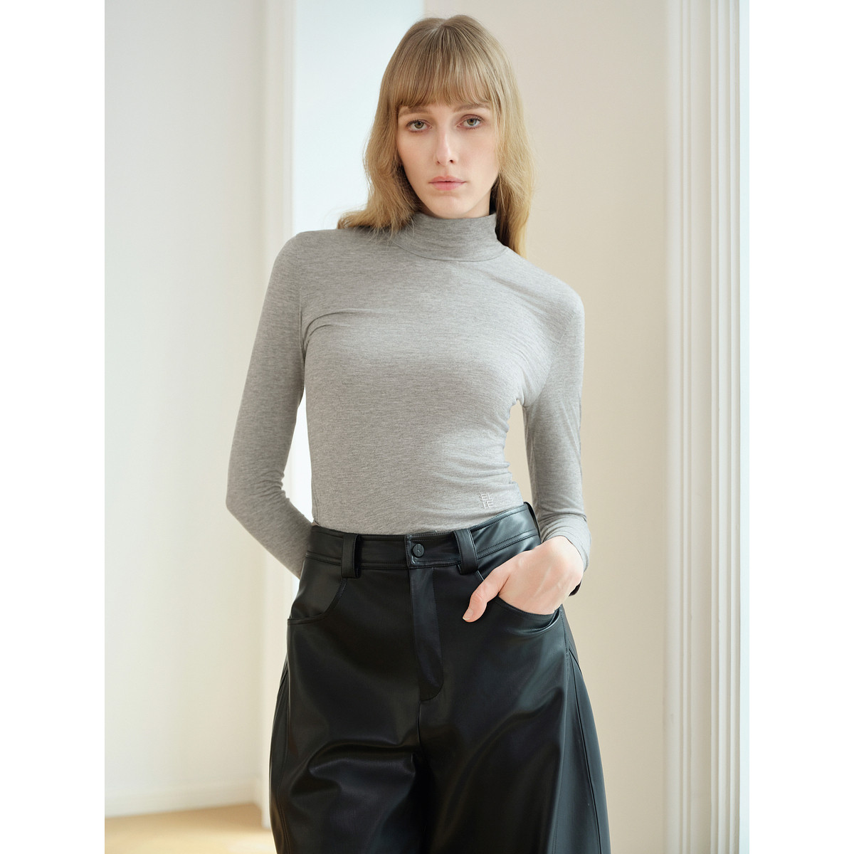widelia十三行老板娘冬正肩小立领半高领打底衫弹力长袖T恤女9585