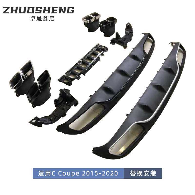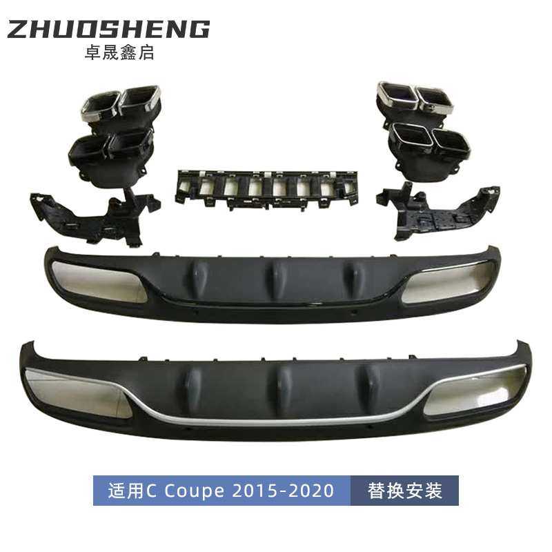 适用于奔驰C级双门尾唇尾喉C205改15款C63AMG尾唇四出尾喉小包围