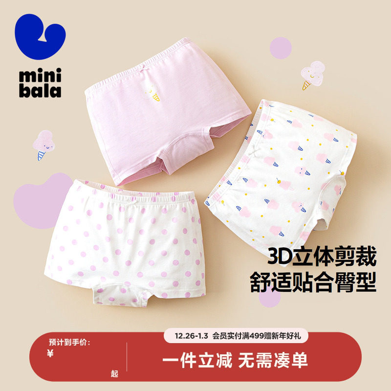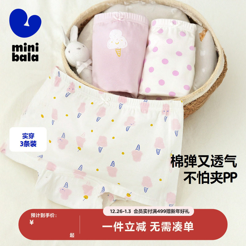 【3条装】迷你巴拉巴拉新款女童抑菌纯棉内裤不夹pp平角短裤