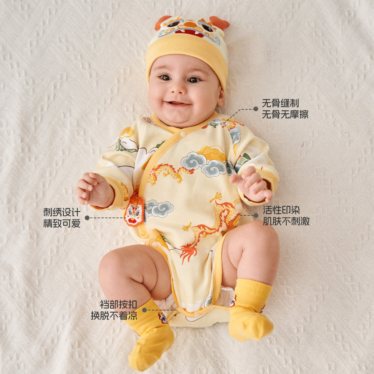 aqpa包屁衣新生婴儿春秋季龙年满月宝宝衣服周岁服连体衣哈衣洋气