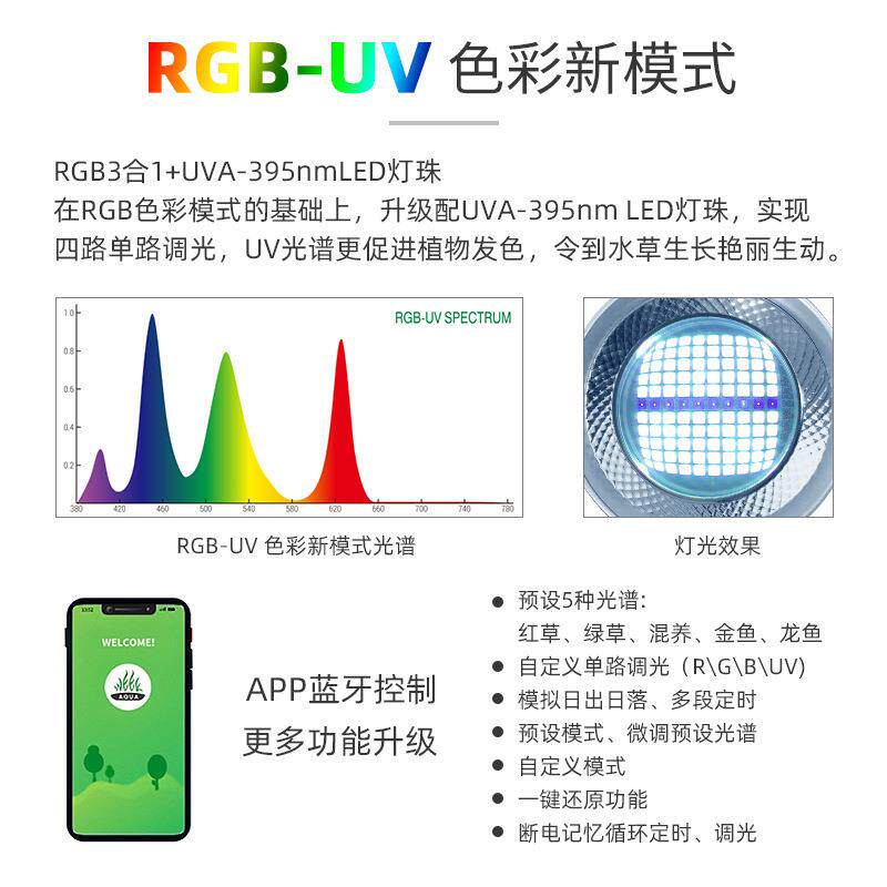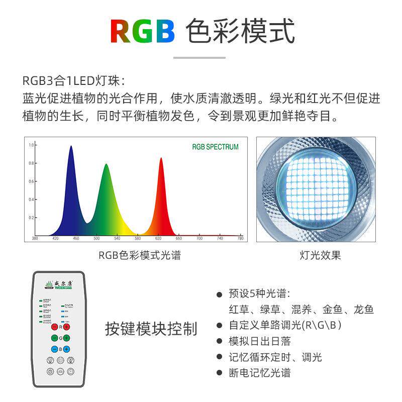 威尔康全光谱水草筒灯T90WRGB 水族水草缸AT5水草灯