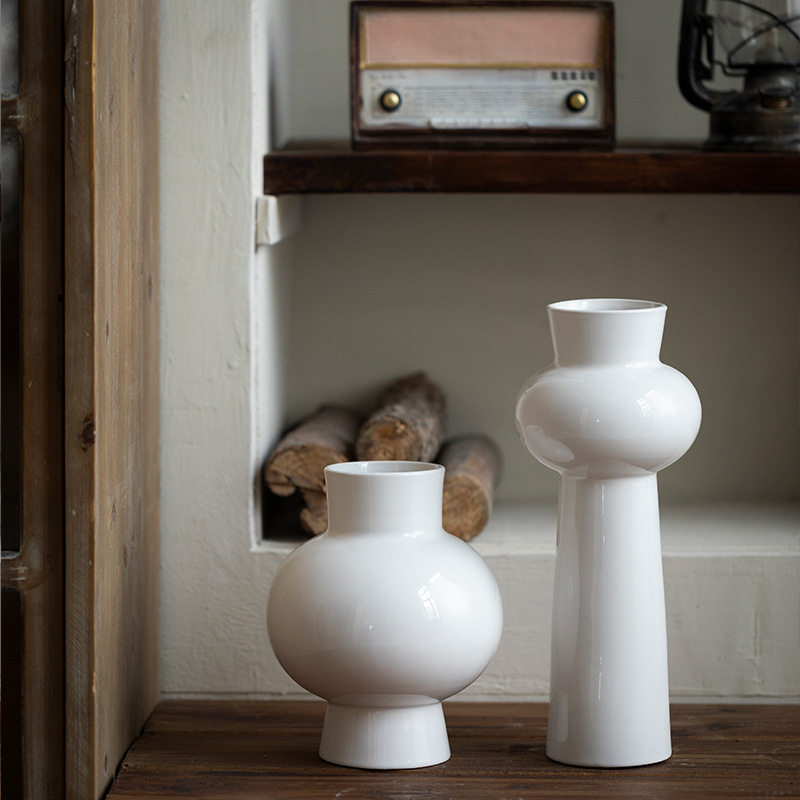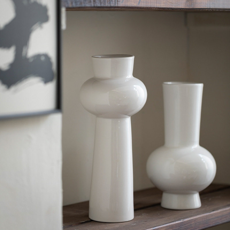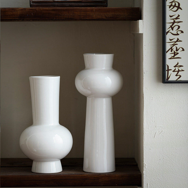 景德镇现代简约陶瓷花瓶高级感白色桌面花器客厅书房插花装饰摆件