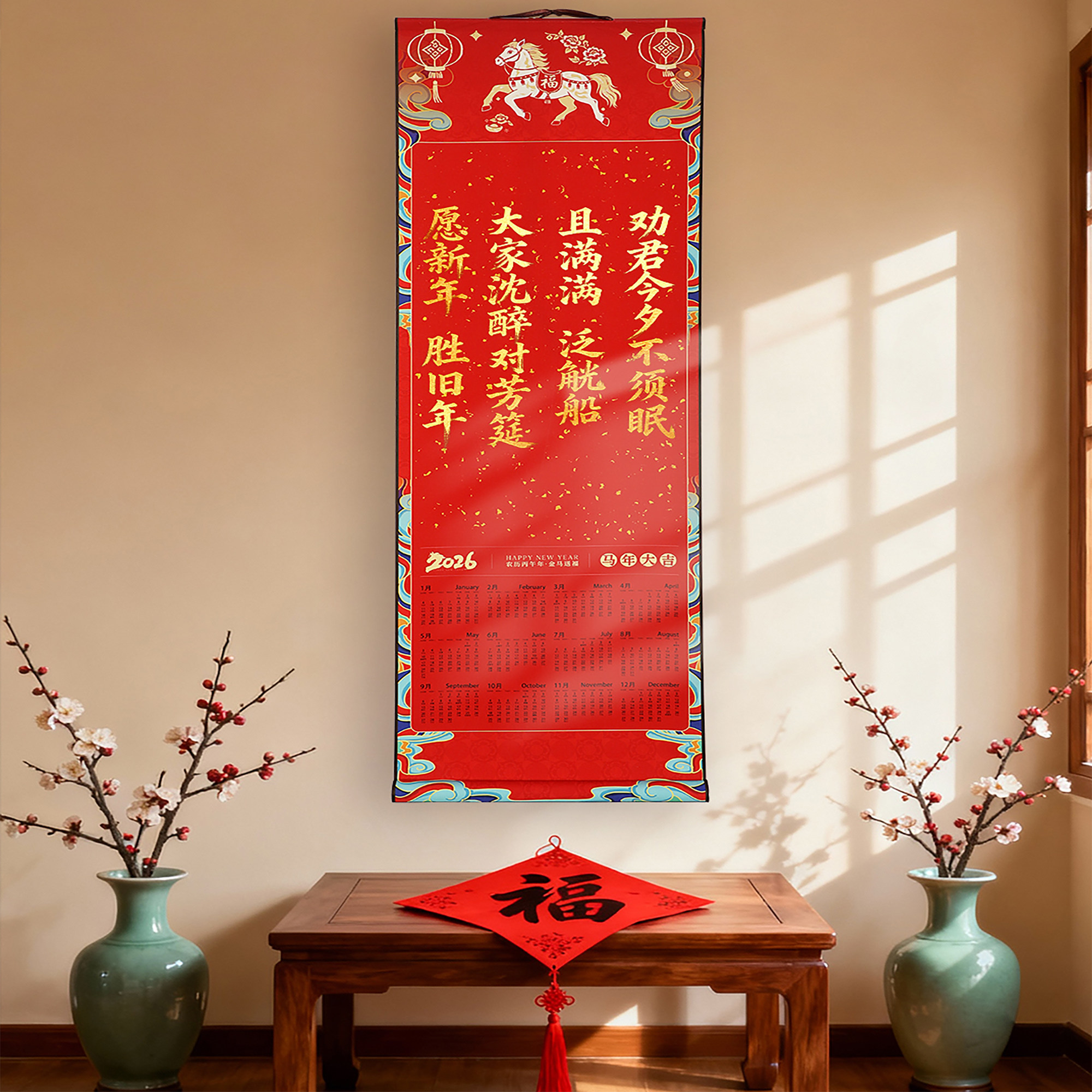 定制2026年挂历空白宣纸日历卷轴DIY年历书法国画创作半生熟万年红挂轴马年文创礼品新年礼物书房装饰画
