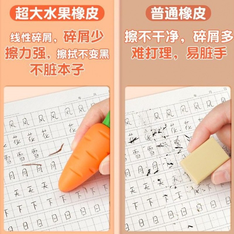 超大水果橡皮擦幼儿园小学生儿童文具擦字无屑无痕卡通可爱橡皮DD干净创意无毒胡萝卜草莓芒果干净橡皮