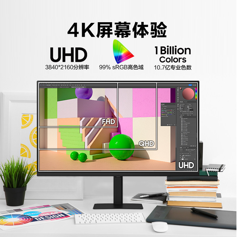 三星显示器32英寸4K超清HDR设计电竞游戏台式电脑屏幕S32D706EAC