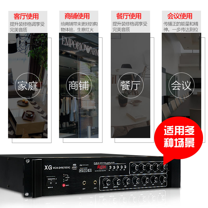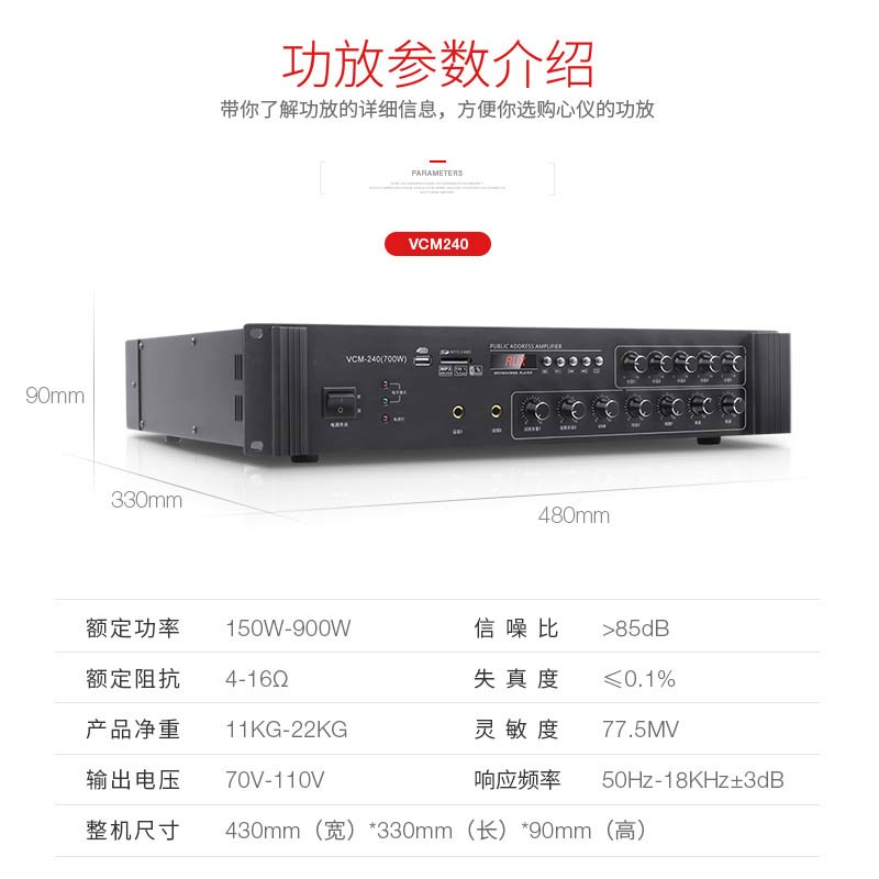 香歌vcm240分区蓝牙功放背景音乐校园公共广播系统音响定压功放机