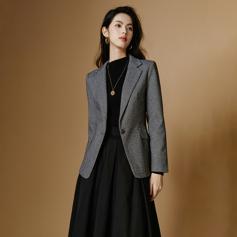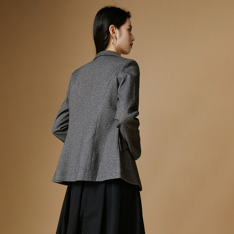 晚白2026年春新款气质西服通勤面试西装外套翻领修身毛料短外套女