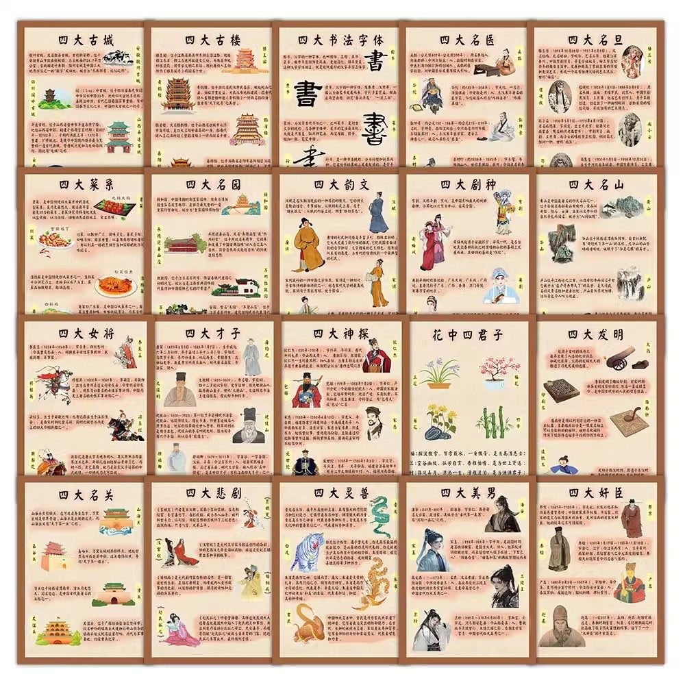【大图释官方授权】90张中国传统知识文化贴纸儿童玩具装饰笔记本头盔手账行普插画学生手账趣味学习装饰贴画