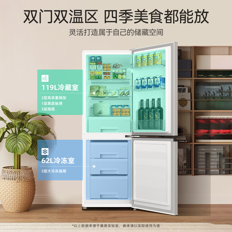 美菱冰箱181L复古小冰箱两门家用变频小型冷藏冷冻小户型出租房用