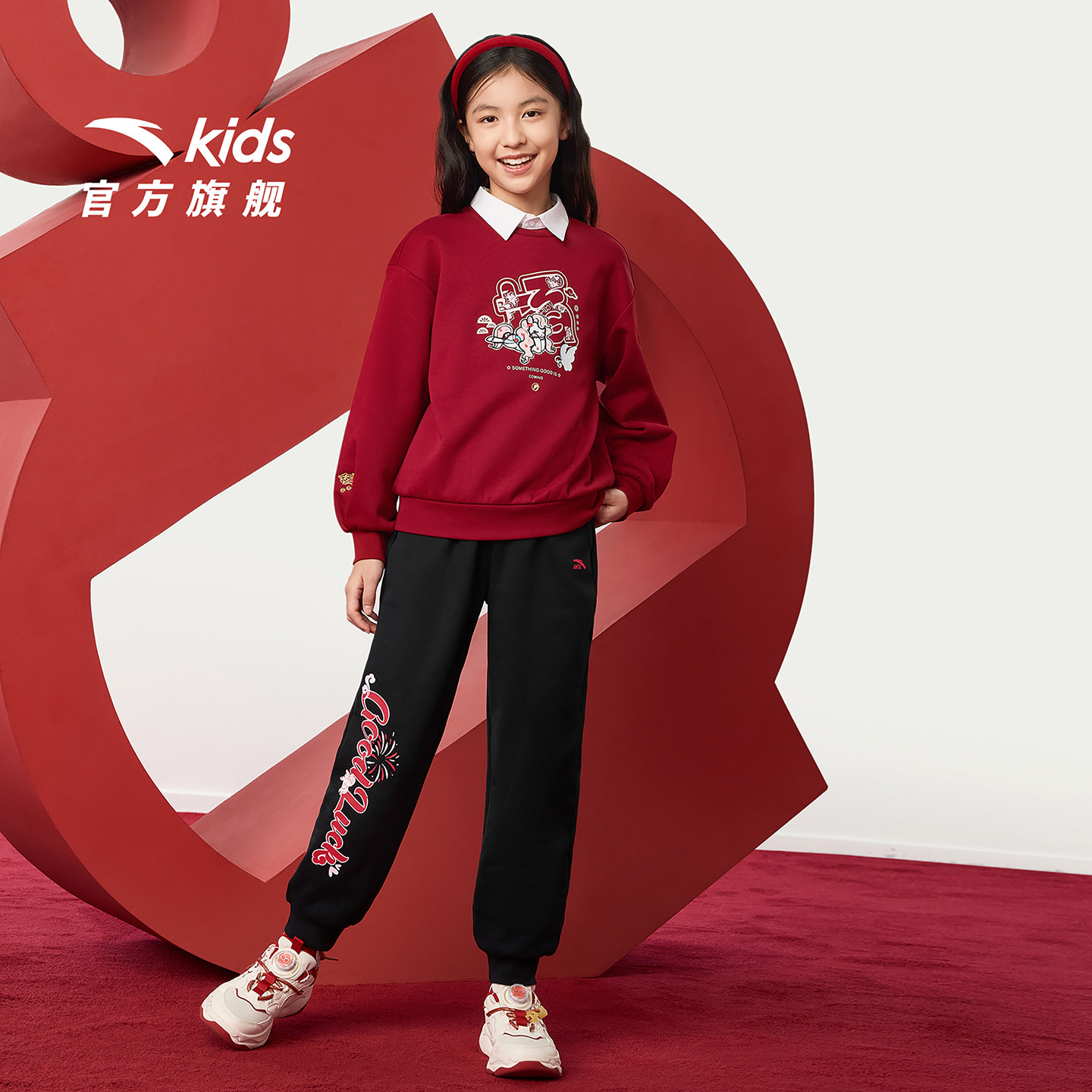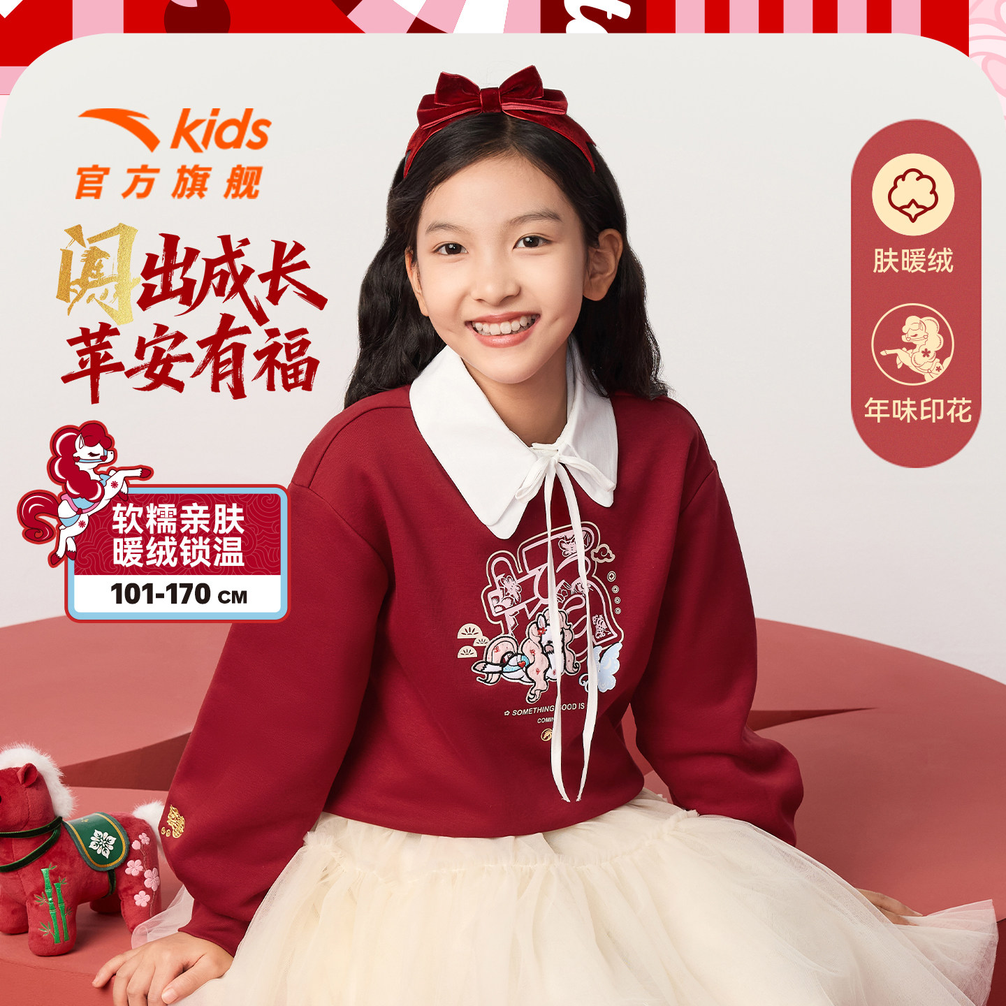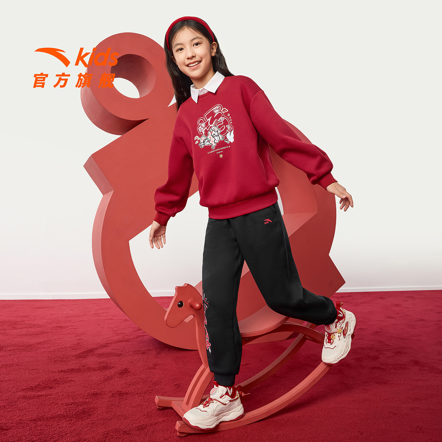 【马年红色新年】安踏女童套装2026款洋气卫衣卫裤印花拜年服加绒
