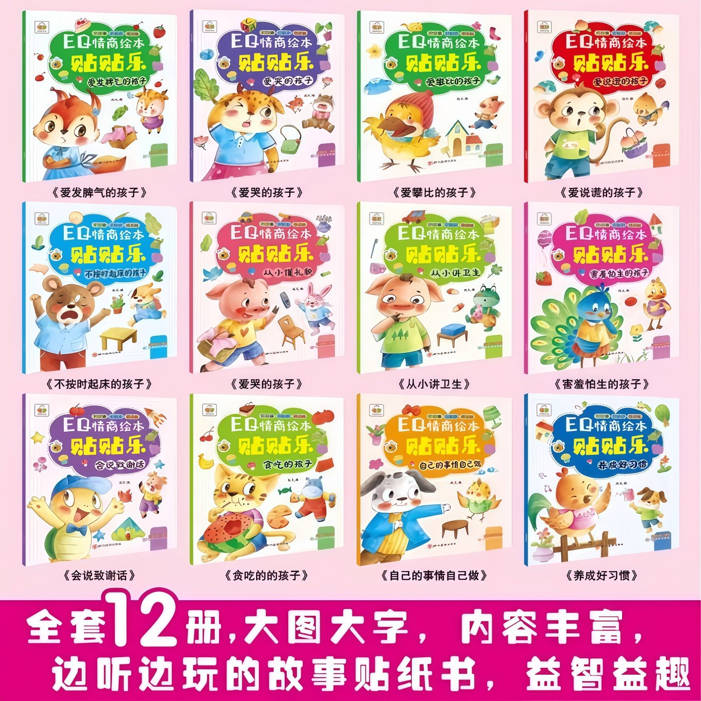 萌崽新款学霸学渣果冻贴纸安静书免裁剪手工粘贴diy女孩儿童玩具