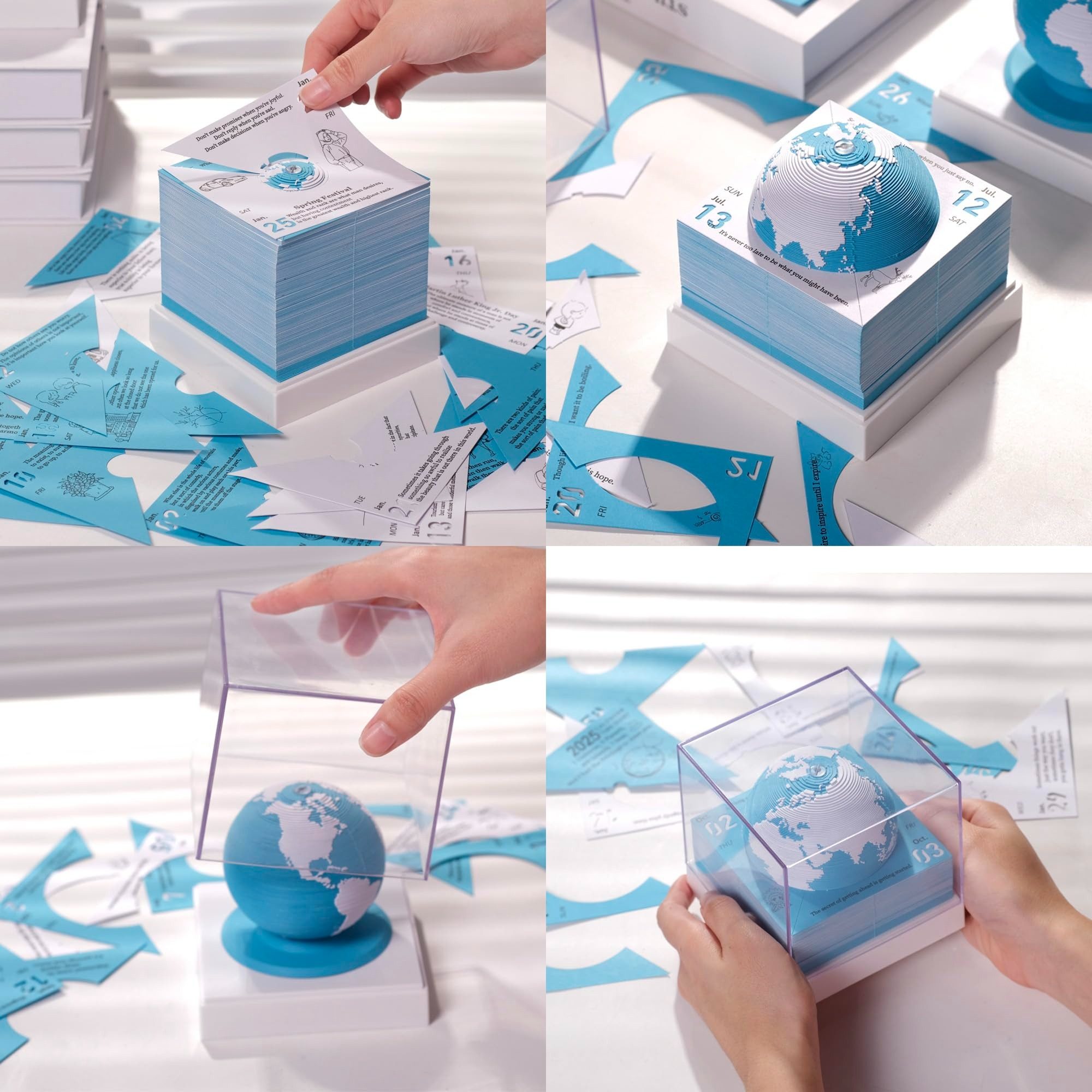 地球纸雕日历3D立体模型手撕2026年新款便签贴圣诞节创意台历定制