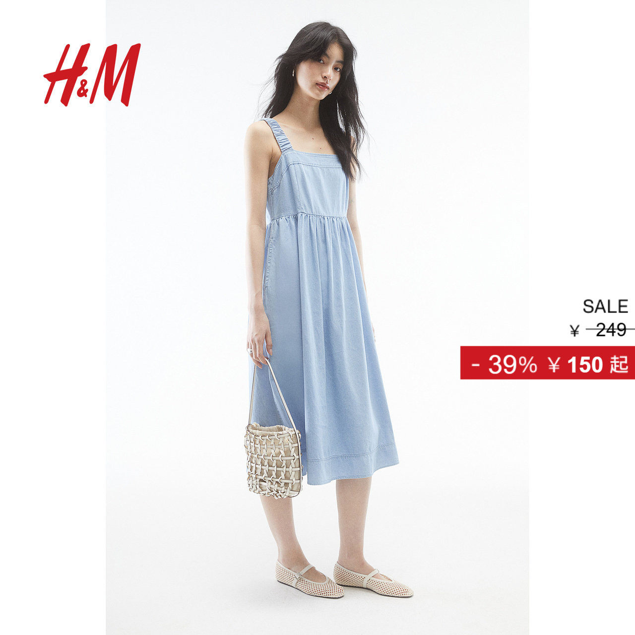 HM女装背心吊带连衣裙秋季休闲柔软方领无袖棉质中长裙1234174
