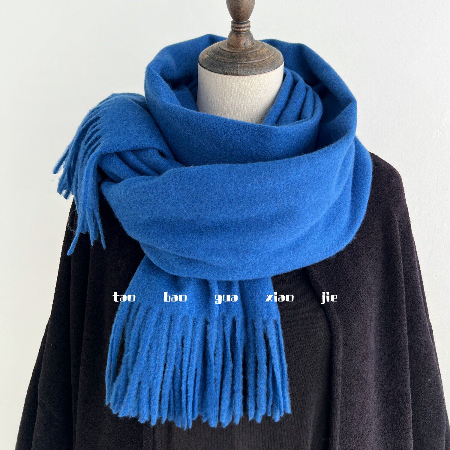 宝蓝色围巾克莱因蓝女冬季纯色保暖仿羊绒含羊毛披肩两用高级感男