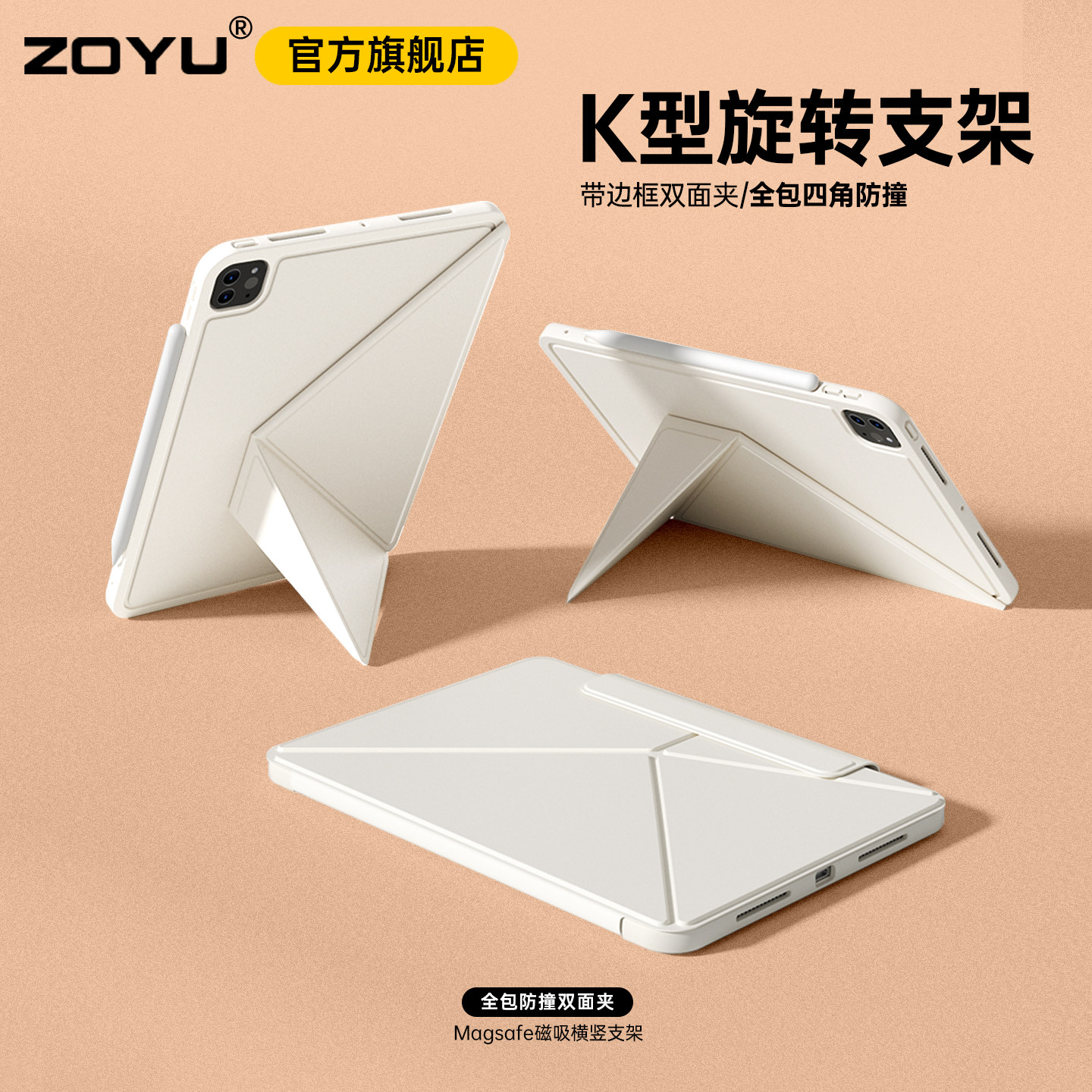 iPad11保护套iPadpro双面夹带边框苹果air7保护壳iPad10平板全包防摔air654旋转k折支架13寸12.9磁吸拆分笔袋