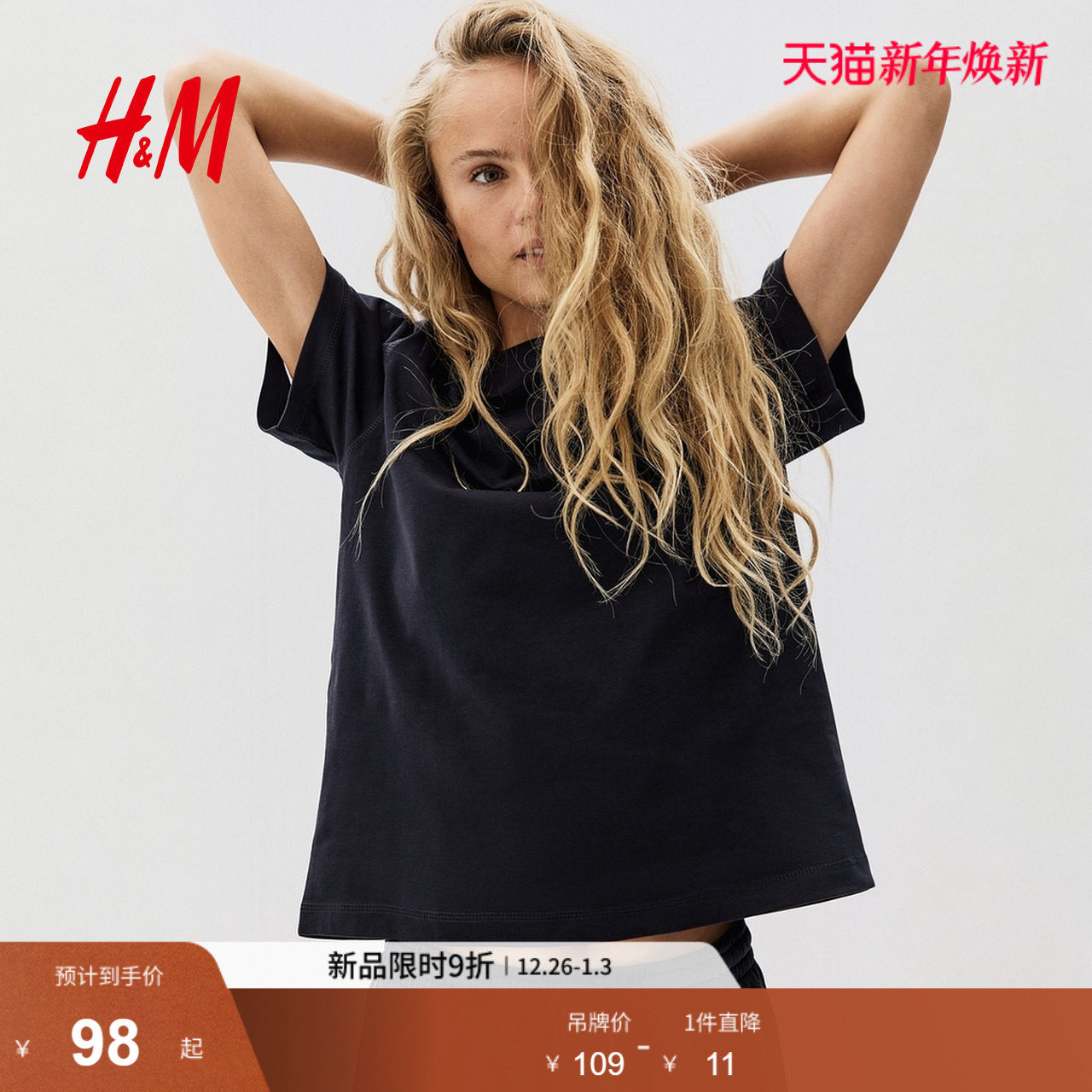 HM2025冬季新款女装大廓形棉质T恤1290372
