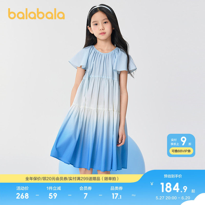 巴拉巴拉女童裙子儿童连衣裙2025款夏大童小飞袖塔裙童装透气薄款