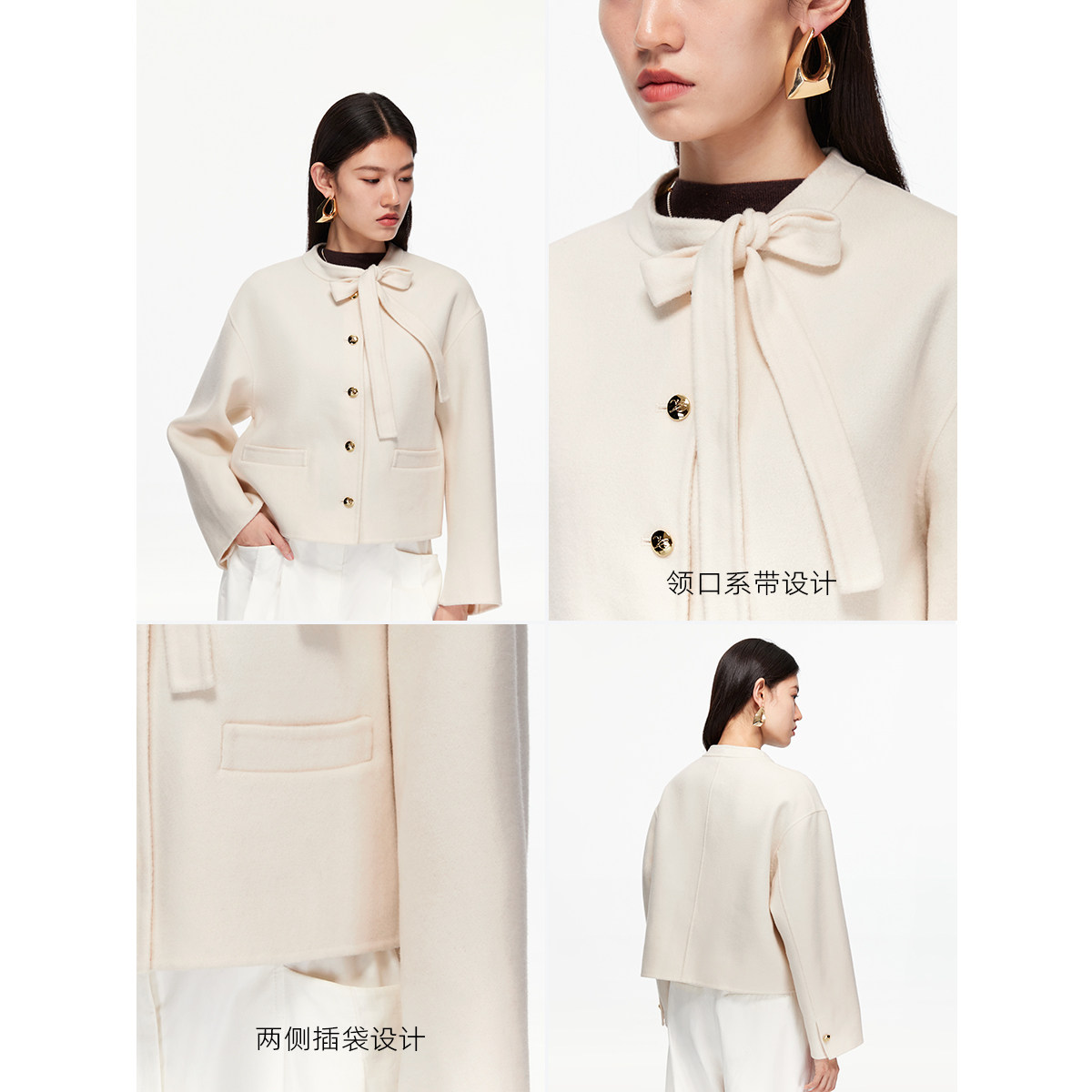 Vero Moda毛呢外套2025秋冬新款含绵羊毛系带短款大衣32534T009