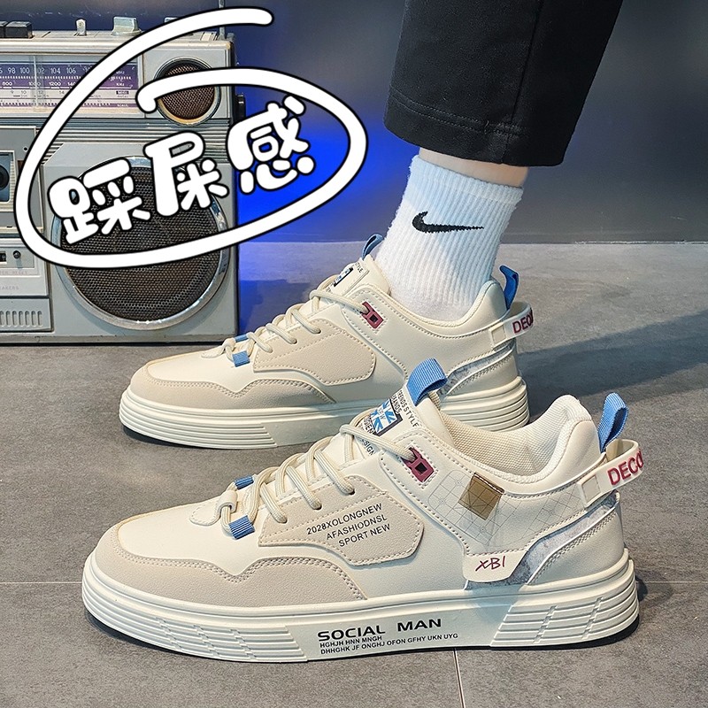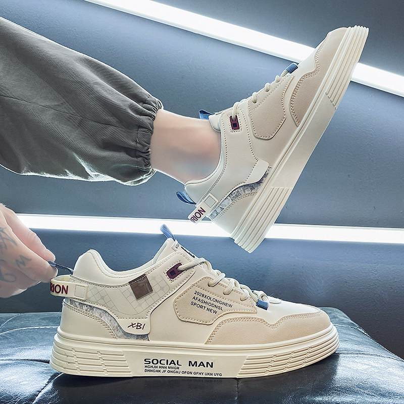 男鞋2025新款秋季皮面防水板鞋工作上班百搭休闲运动小白潮鞋耐磨