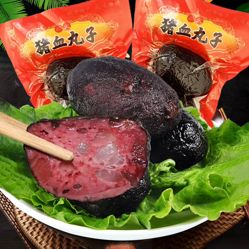 湖南特产武冈土特产猪血丸子烟熏柴火多肉圆子猪血粑粑血豆腐地方