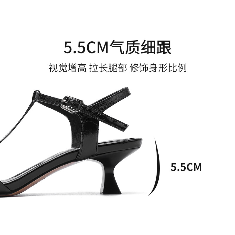 哈森夏季新款T字带真皮露趾时装凉鞋高跟鞋气质通勤女鞋HWM250141