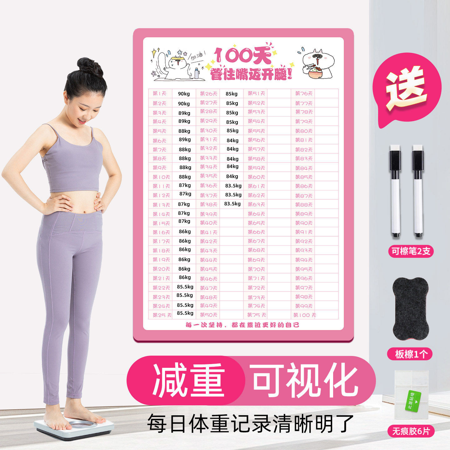 减肥自律计划表墙贴可吸磁擦写打卡海报体重记录表励志瘦身计划监督挂墙冰箱贴