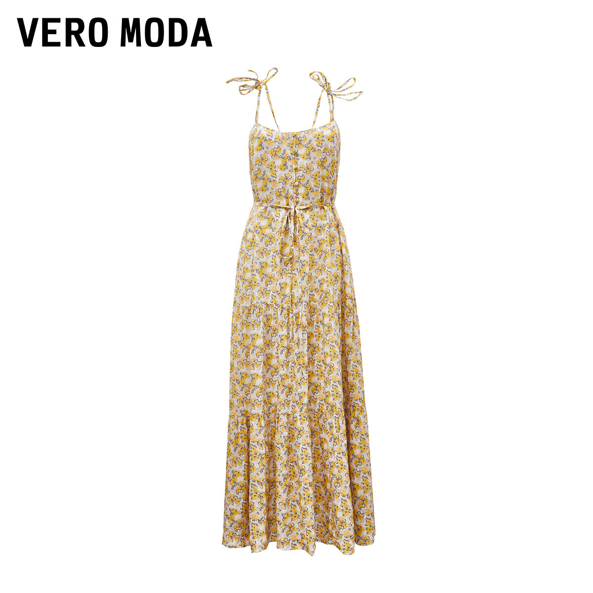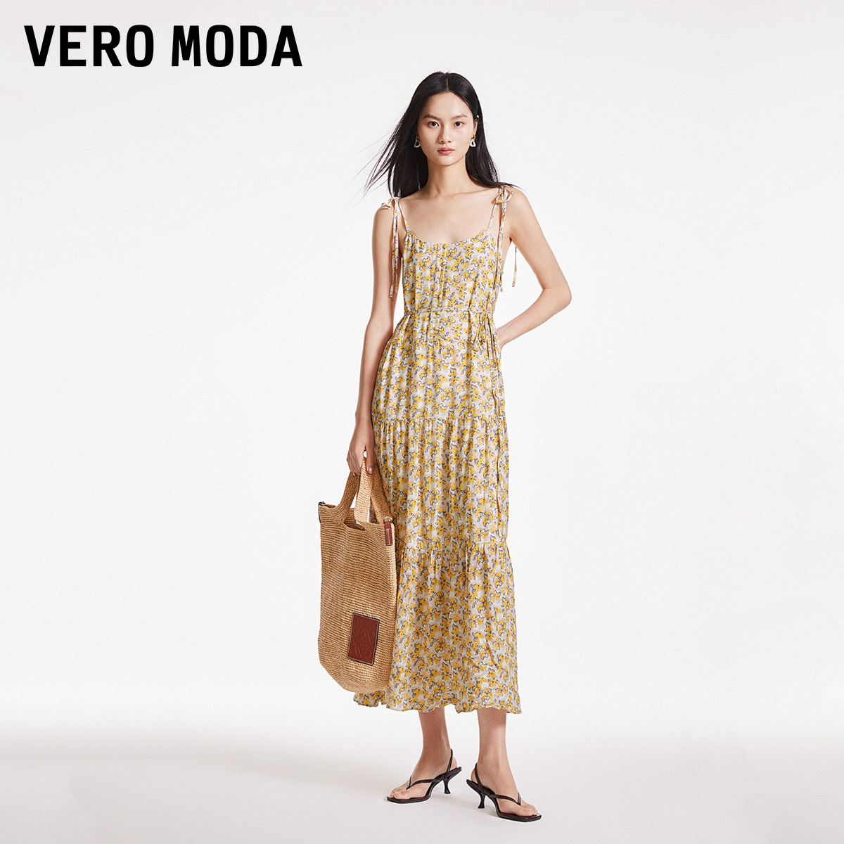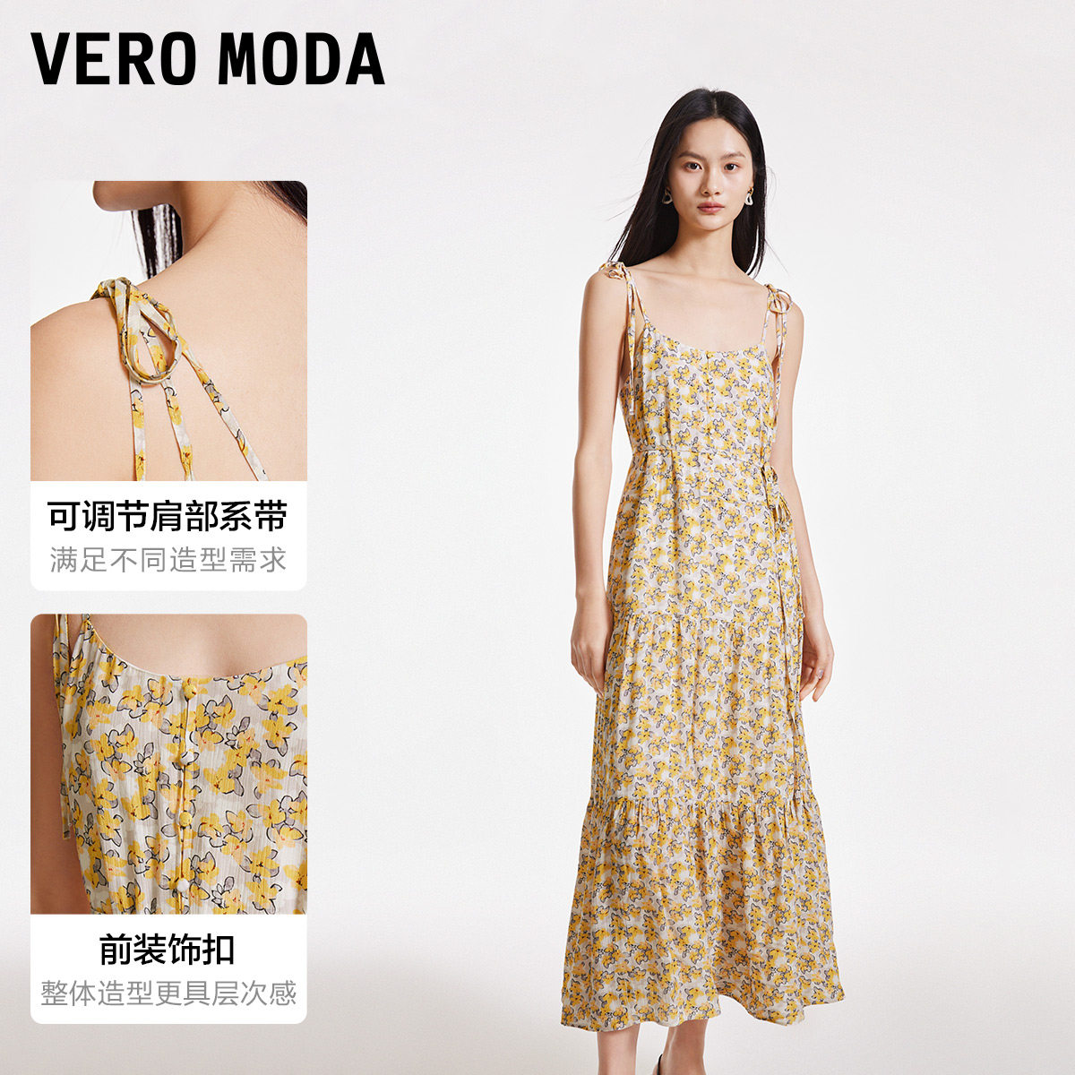 Vero Moda吊带裙女秋冬系带直筒长裙优雅度假风32437A008
