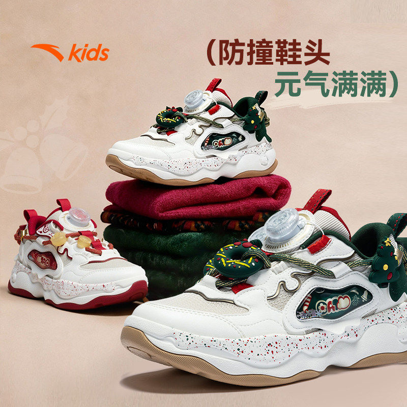川流2|鸿星尔克童鞋男童红色秋冬运动鞋儿童旋钮新年鞋大童休闲鞋