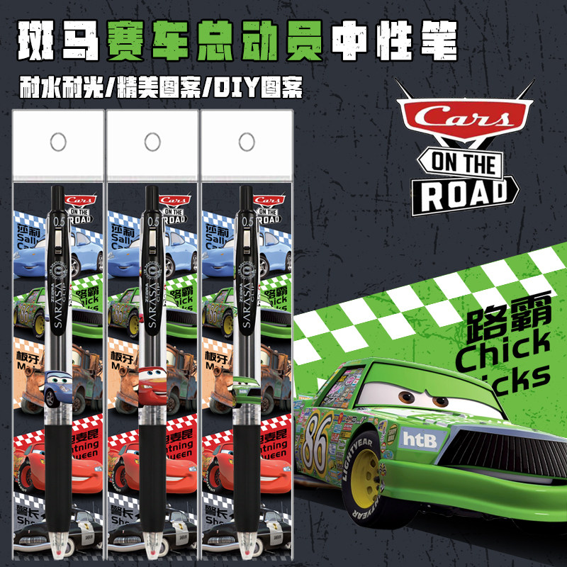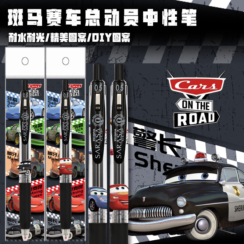 日本ZEBRA斑马赛车总动员DIY贴纸速干中性笔麦昆路霸板牙按动笔