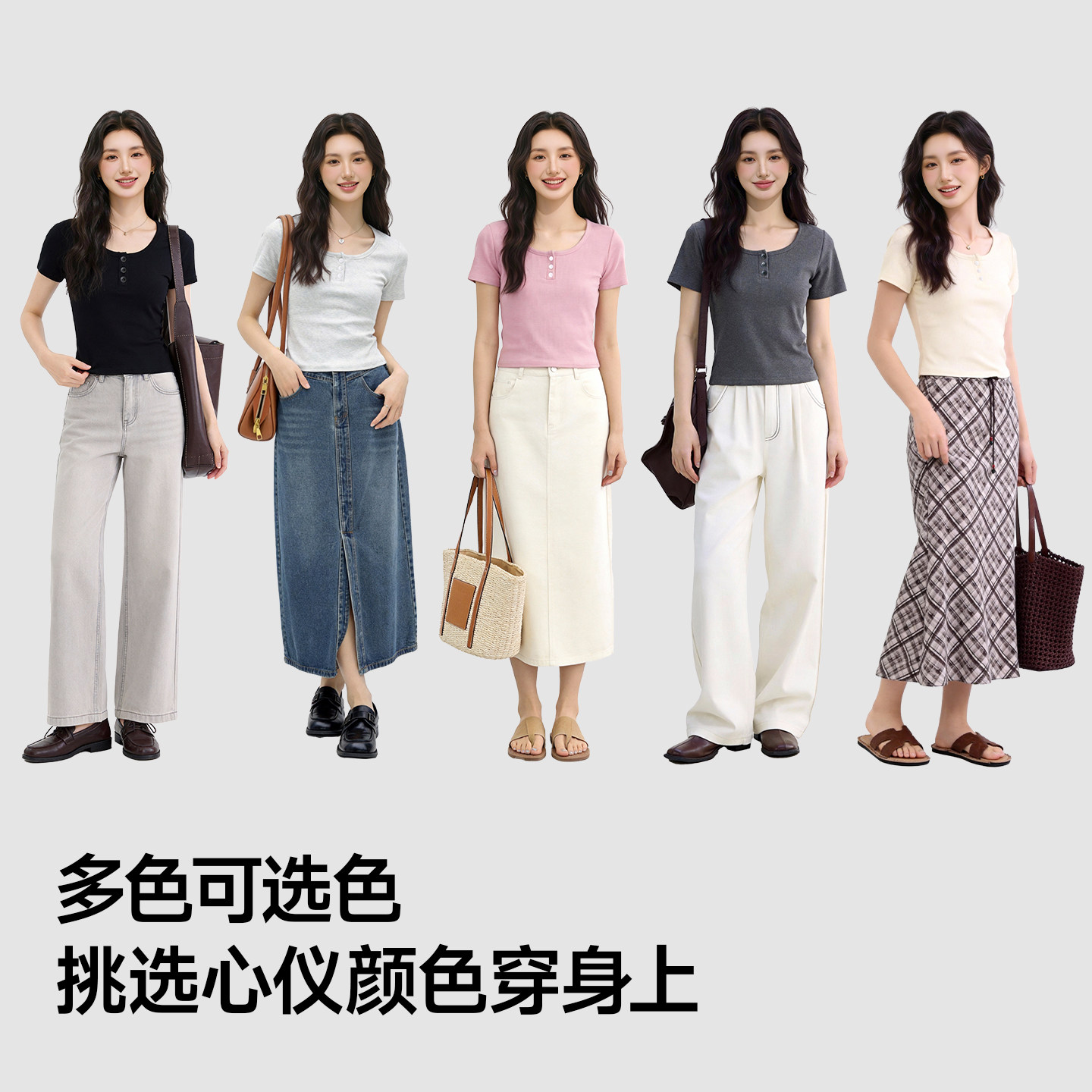 陈都灵丨凉感T森马短袖T恤女修身纯色基础夏季新款圆领白色女装