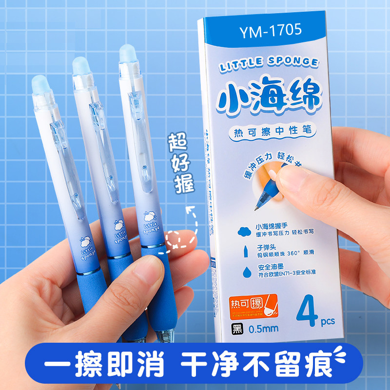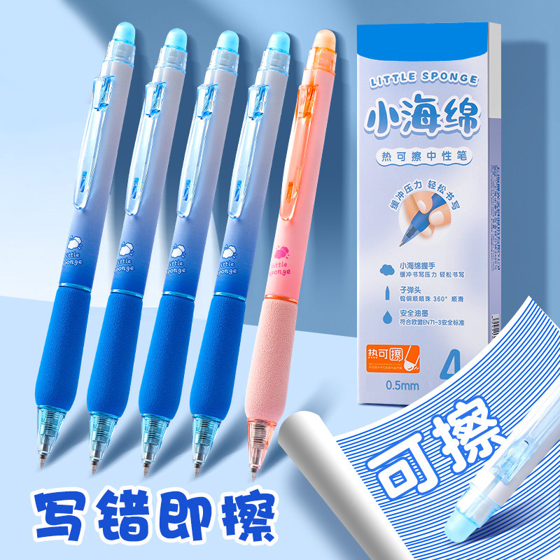 小学生海绵热可擦中性笔三年级专用可擦笔男孩晶蓝黑色魔力擦