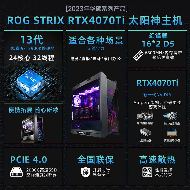 【国补5%】ROG 14代cpu RTX5080/5060Ti/5070Ti/5070台式电脑diy组装水冷电脑主机ROG太阳神全家桶